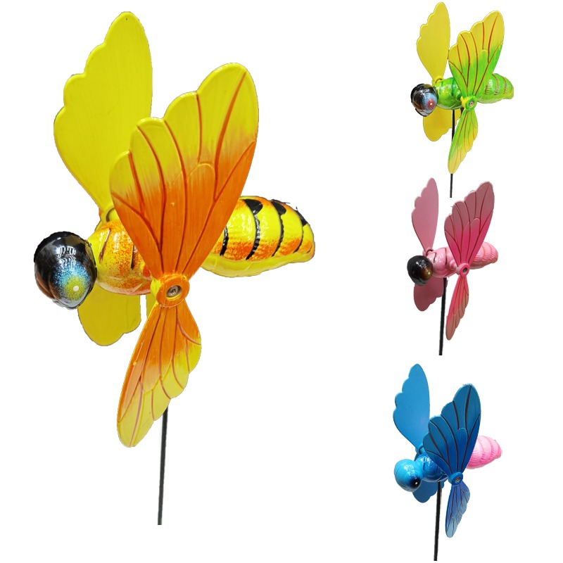 This Insect Garden Stake Set of 2 features winged insect figures designed to add visual interest to outdoor spaces. The raised wings and contrasting colors make the stakes clearly visible when placed among plants, lawns, or garden beds.
