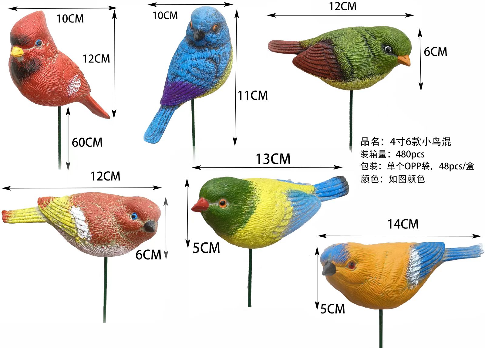 Bird Size: Approx. 10–14 cm (varies by design)
