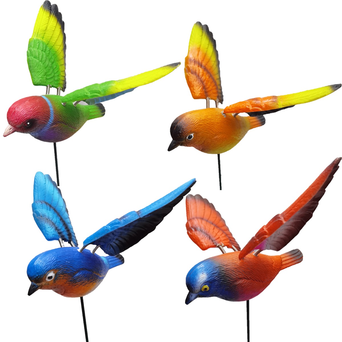 Each bird is securely mounted on a metal stake, allowing quick and stable installation directly into soil, pots, or garden beds. Ideal for residential gardens, commercial landscaping, plant nurseries, and outdoor decorative arrangements. Designed for outdoor use with minimal maintenance requirements.