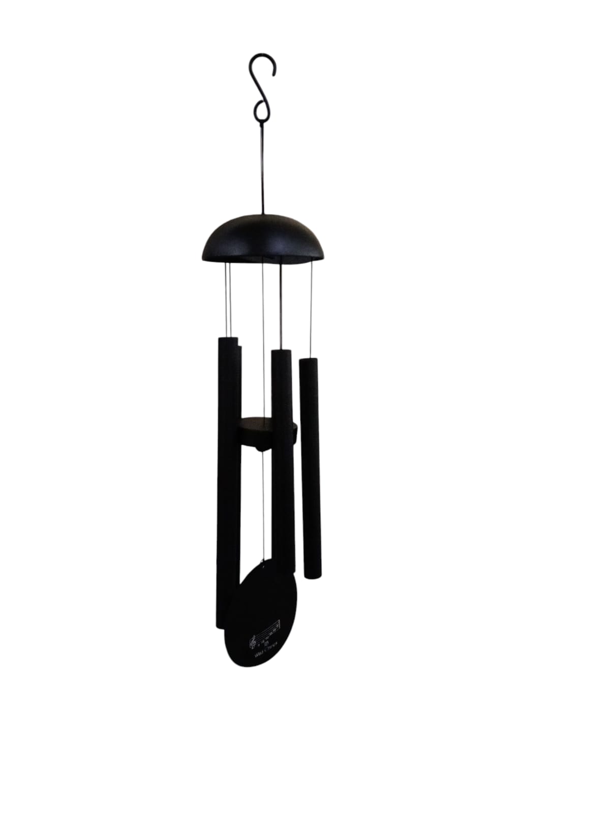 | Design | features sleek metal tubes of varying lengths hanging from a circular top with a central clapper and windcatcher, creating soothing tones in the breeze |