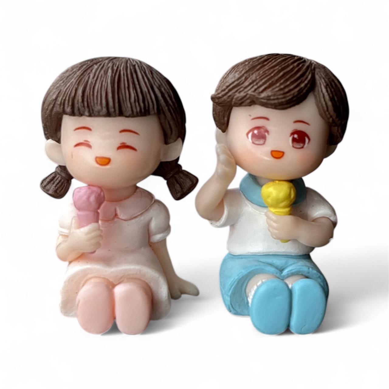 Children with Ice Cream Couple Miniatures (Set of 2) I Decor Item | Home Decor | Back Garden Nursery