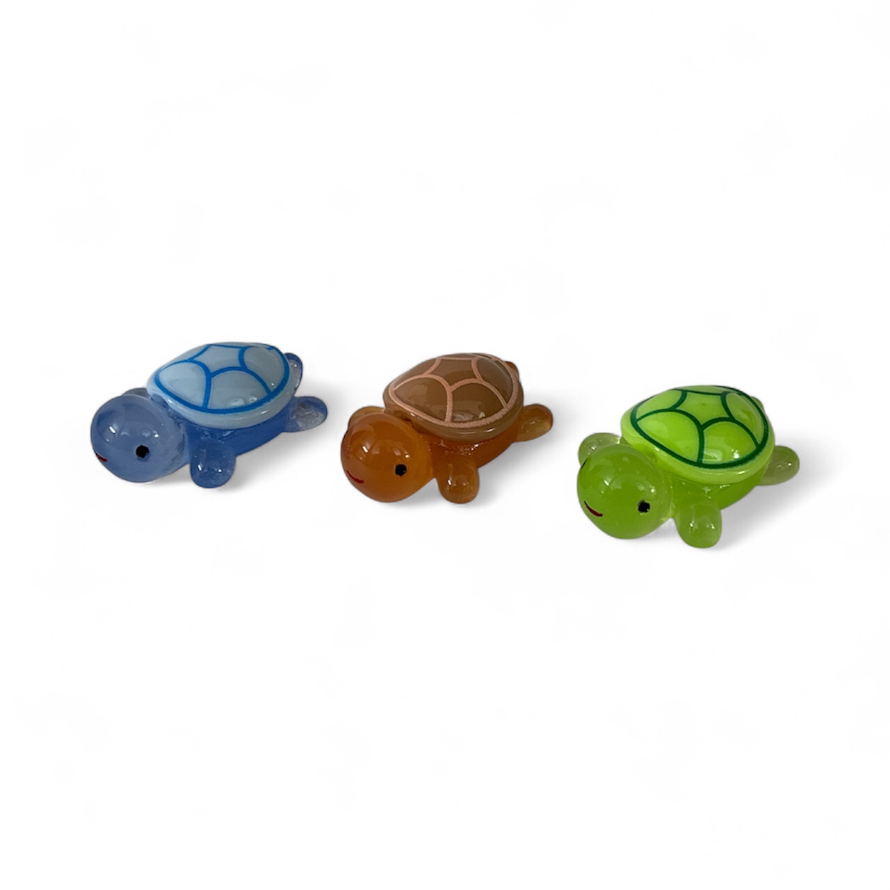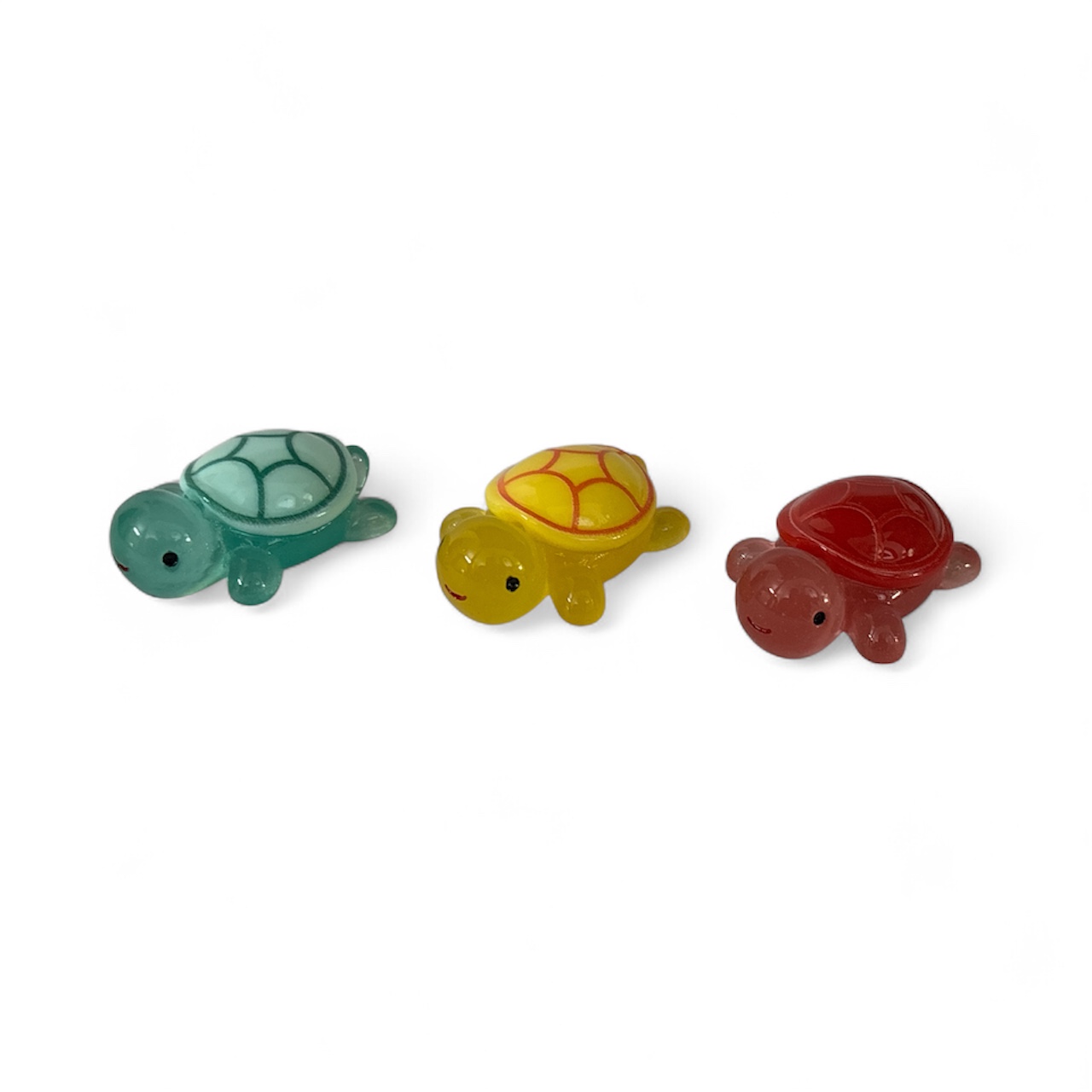 Add a cheerful pop of color to your miniature décor with this delightful Mini Glow Turtle Miniature. Designed in a charming turtle shape, this figurine features a smooth, glossy glow-style shell with fine pattern detailing and bright translucent colors that reflect light beautifully. Its friendly expression and compact form make it a lovely accent for creative and decorative displays.